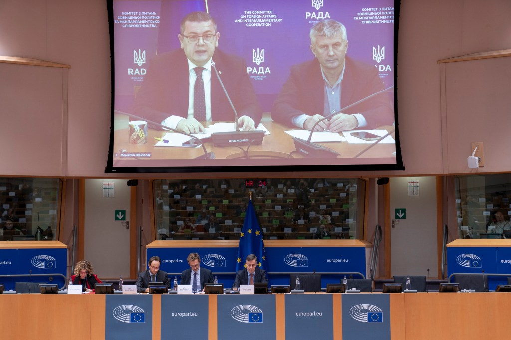 Олександр Мережко от украинската страна изрази мнение, че е неправилно да се призовава жертвата да спре да се защитава срещу агресора. И подчерта, че санкциите действат, и че без санкциите положението на Украйна би било много по-тежко. Основната теза, лансирана очаквано в Комисията по външните работи на Евросъюза е, че най-голямата сила на ЕС е икономическа и че чрез нея може да се въздейства върху способността на Русия да води тази война. За пореден път се стигна до решението: да се подкрепи Украйна и да се удари руската икономика колкото се може повече.